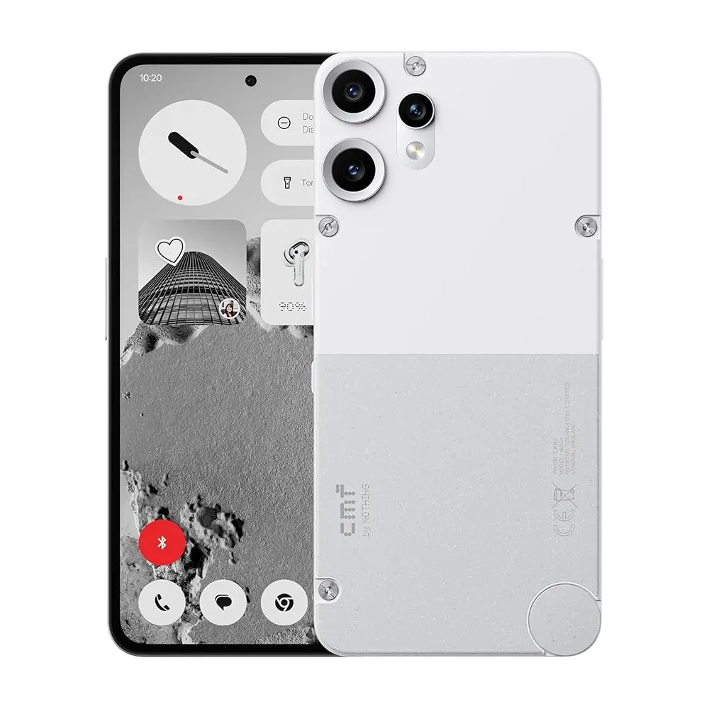 Ekran: 6,77″ AMOLED, 2392×1080, 120 Hz, HDR10+, do 3000 nit Procesor: MediaTek Dimensity 7300 Pro (4+4 rdzenie: 2,5 GHz & 2,0 GHz) GPU: Mali-G615 MC2 RAM / Pamięć: 8 GB LPDDR4X; 128/256 GB UFS 2.2; microSD do 1–2 TB Aparaty tylne: 50 MP (f/1.9), 50 MP (tele, 2× zoom opt.), 8 MP (ultraszeroki) Aparat przedni: 16 MP (szeroki) Bateria: 5000 mAh; ładowanie 33 W, odwrotne 5 W System: Android 15 (Nothing OS 3.2) Wodoodporność: IP54 Łączność: 5G, Wi-Fi ax, Bluetooth 5.3, NFC, GPS Porty / Czytniki: USB-C; czytnik linii papilarnych w ekranie Wymiary / Waga: 164 × 78 × 7.8 mm; 185 g Wersje kolorystyczne: Light Green, Black, White, Orange Wsparcie: 3 aktualizacje Androida, 6 lat aktualizacji bezpieczeństwa